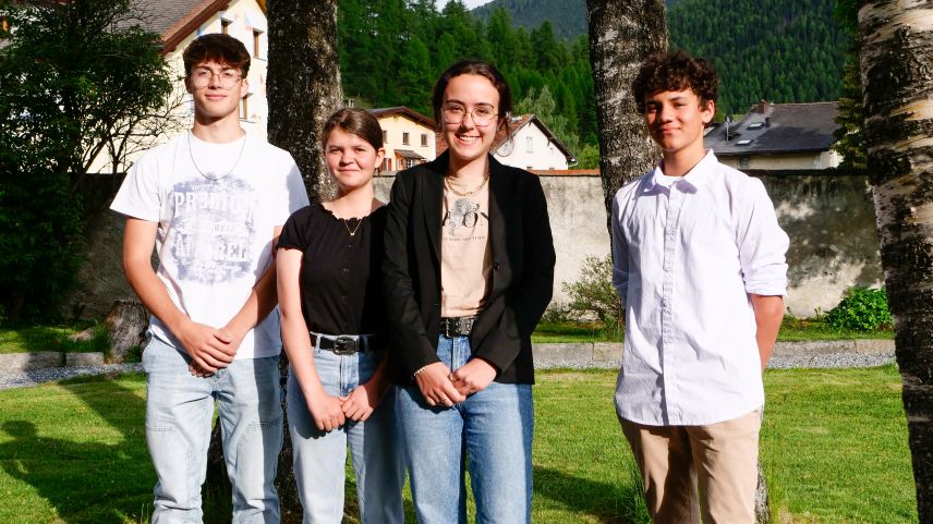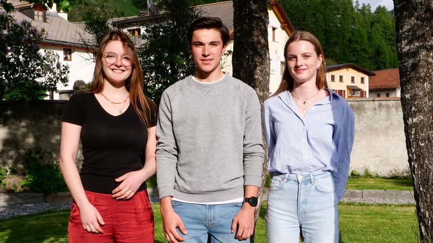 Ils vendschaders da la categoria 7. - 9. classa: Joao Pedro Jardim Cattarino, Ursina Bonorand e Jana Hew, Luan Hofmann (fotografia: Jon Duschletta)