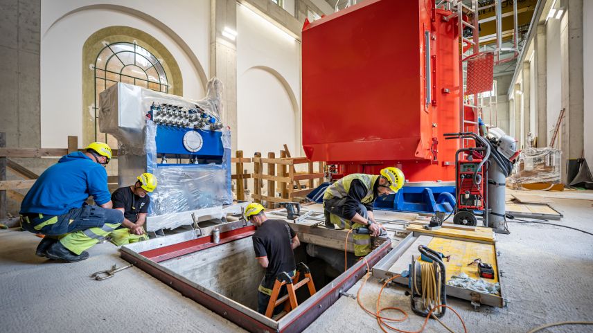 Blick in die Repower-Kraftwerkszentrale Robbia, wo im Rahmen der Gesamterneuerung die Montagearbeiten der drei Generatoren und Turbinen im Gang sind. Fotos: Repower/Yanik Bürkli