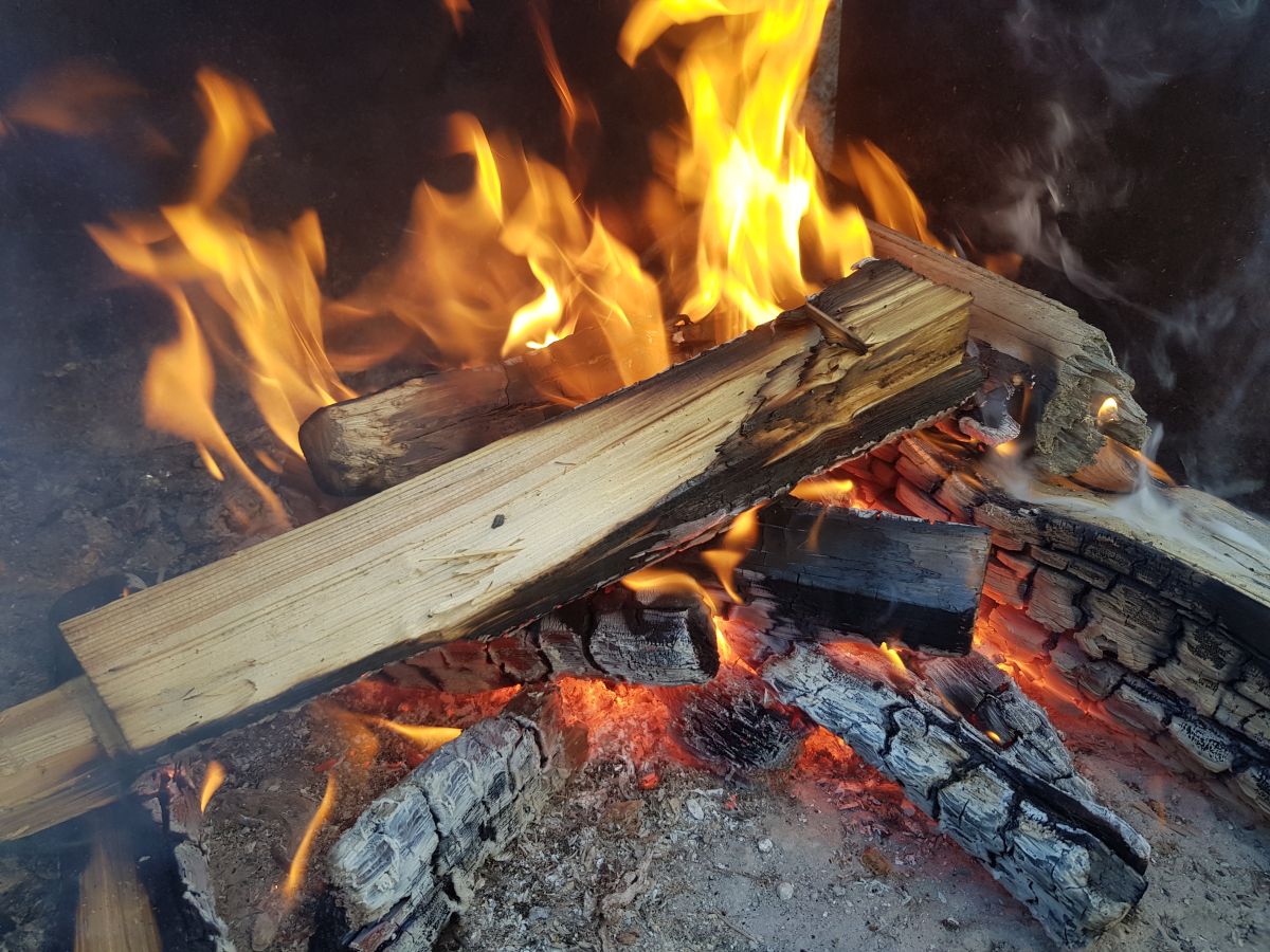 Damit ein Feuer brennt, braucht es drei Dinge. Zuerst muss Holz gesammelt und auf einen Haufen gelegt werden. Zudem braucht es Luft, die zum Glück überall um uns herum ist. Wenn das Holz dann angezündet wird, haben wir die dritte Zutat für ein Feuer. Denn für die hellen Flammen braucht es noch eine Wärmequelle. Verbinden sich dann Stoffe aus dem Holz mit der Luft, sehen wir die gelben und roten Flammen. Kleine Teilchen, die nicht verbrennen und verschiedene Gase sehen wir als Rauch.