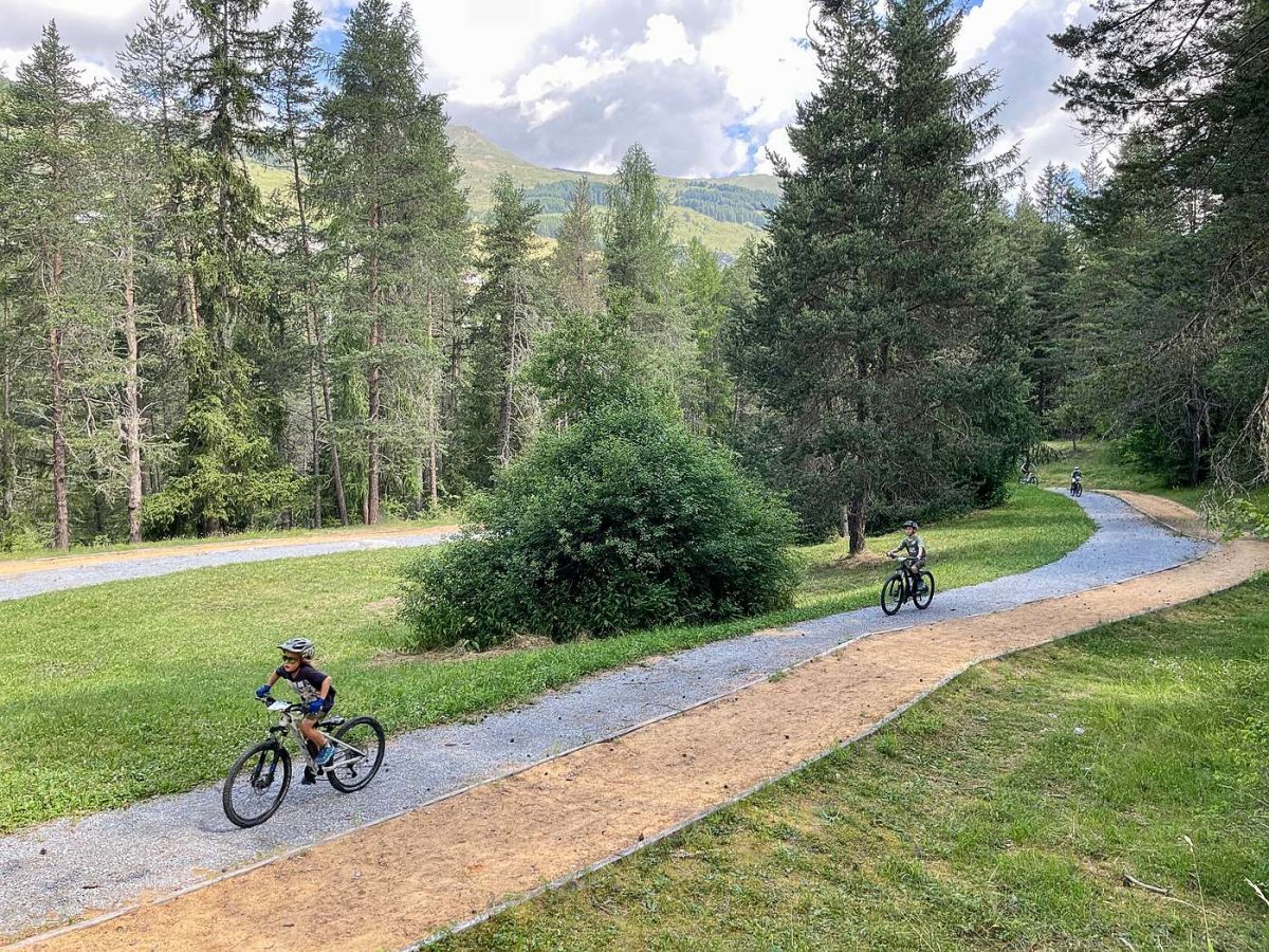 Den Vergleich mit der Skischule zieht auch Emanuela, eine Mutter von zwei Teilnehmerinnen. Sie spielt in der Nähe mit dem jüngsten Kind, das noch nicht das Campalter erreicht hat. „Der Bikecamp ist das Pendant zur Skischule im Winter“, sagt sie. Für sie sei es wichtig, dass ihre Kinder Sportarten wie Skifahren und Biken von Grund auf richtig lernen. Es sei zudem für alle entspannter, wenn die Kinder in Gruppen lernen und zwar von Profis. Die Familie aus Chur verbringt nun die ersten Ferientage im Unterengadin, weil dieser eine Kurs des Bike World Camps hier stattfindet. „Das Ziel ist, bald stresslos mit der ganzen Familie biken zu können“, sagt Emanuela.