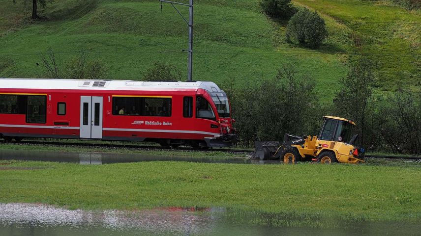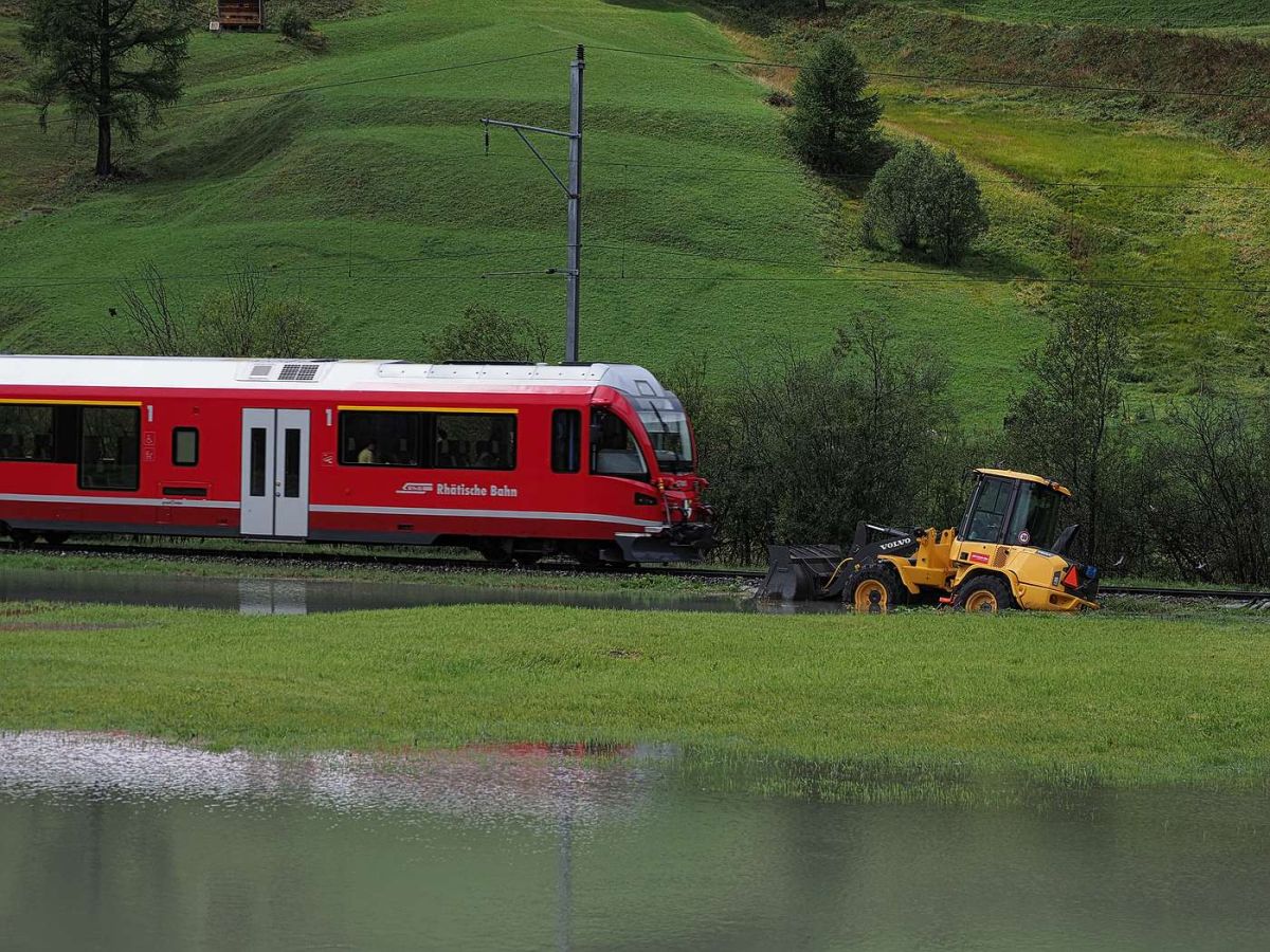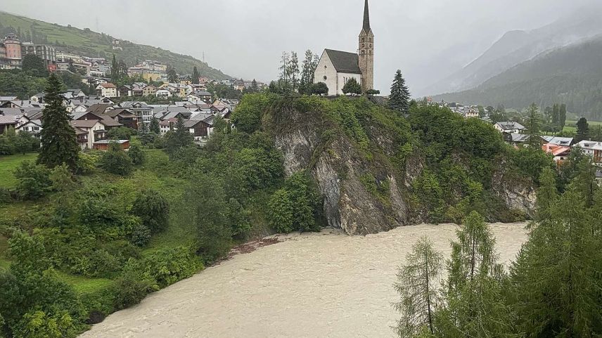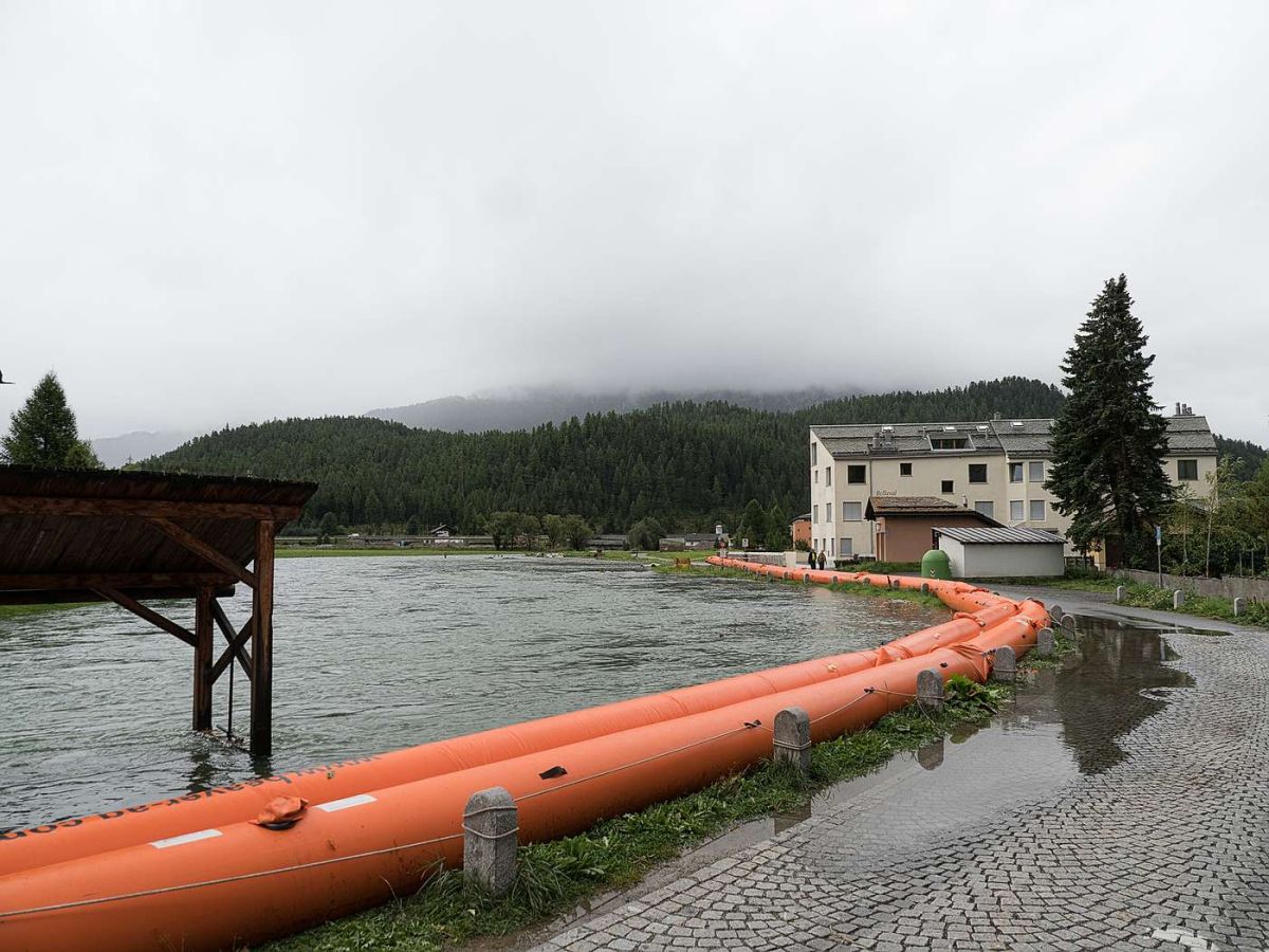 Seit Samstag sind in Südbünden grosse Mengen Regen gefallen, zeitweise begleitet von Gewittern. Das hat viele Bäche und Flüsse anschwellen lassen, teilweise traten diese über die Ufer und verursachten Schäden. Gemäss Anita Senti, Sprecherin der Kantonspolizei Graubünden, handelt es sich bei den gemeldeten Schäden eher um kleinere Ereignisse. So mussten Keller ausgepumpt werden, es blieb Geröll auf der Strasse liegen oder Gärten wurden überschwemmt. Die Feuerwehren, das Tiefbauamt und die Gemeindedienste sind gemäss Senti im Dauereinsatz. Stark betroffen vom Hochwasser war der Campingplatz Sur En in der Fraktion Sent. Dort ist der Inn über die Ufer getreten und hat den Platz teilweise überflutet. In Pontresina wurde die Tragkonstruktion der temporären Brücke zwischen Schlosshotel und Kronenhof weggerissen. Gemäss dem Naturgefahrenbulletin des Bundes, wurde die Hochwasserwarnung für den Inn von erheblich auf gross hinaufgesetzt. Am Montag Nachmittag wurde beim Inn in Martina eine Abflussmenge von 400 bis 450 Kubikmeter pro Sekunde gemessen.