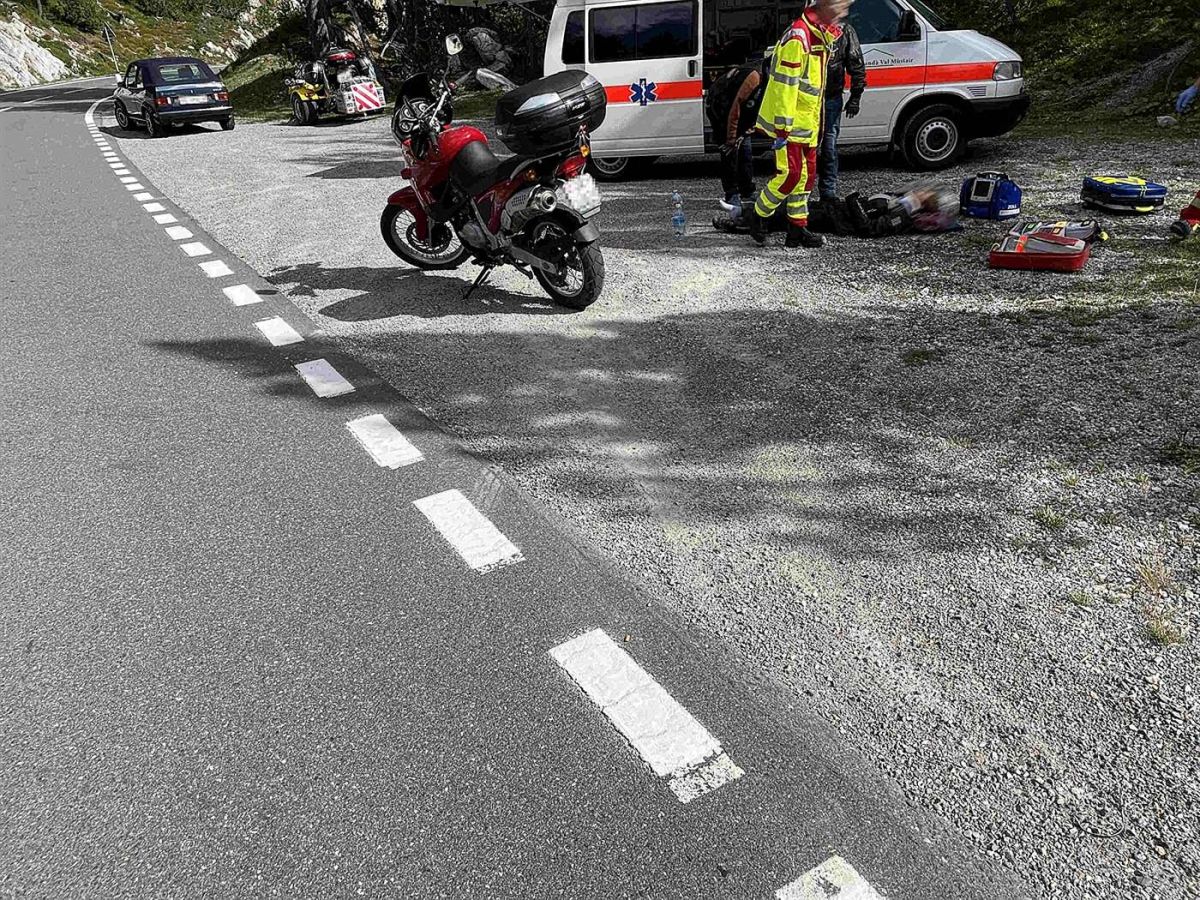 Ein 26-jähriger Portugiese mit seiner 28-jährigen Sozia fuhr zirka 15.10 Uhr auf der Ofenbergstrasse H28c von der Passhöhe in Richtung Tschierv. Beim Anhaltemanöver auf einem Abstellplatz kippte das Motorrad rechtsseitig zu Boden. Dabei wurde der Lenker an der Schulter und die Sozia am Knöchel verletzt. Vor dem Eintreffen der Rettung Val Müstair wurden die Verletzten durch hilfsbereite Drittpersonen betreut.