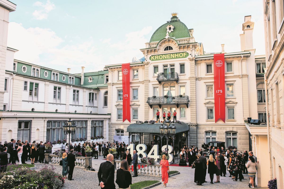 Am vergangenen Samstag wurde das 175-Jahr-Jubiläum vom Hotel Kronenhof in Pontresina mit vielen Gästen aus nah und fern gefeiert. Zum Auftakt wurde ein Apéro im Ehrenhof gereicht. Fotos: Grand Hotel Kronenhof, Pontresina
