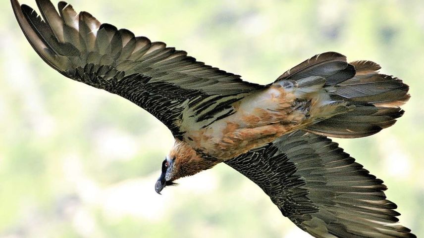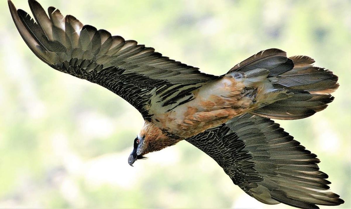 Das Weibchen des Baartgeierpaares am Albula hat heuer seinen 13. Jungvogel aufgezogen. Das weibliche Tier ist ein wild geborener Bartgeier, das im Jahr 2000 im Stelvio Nationalpark schlüpfte. Foto: David Jenny