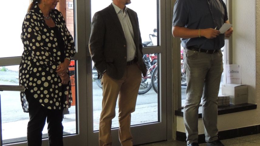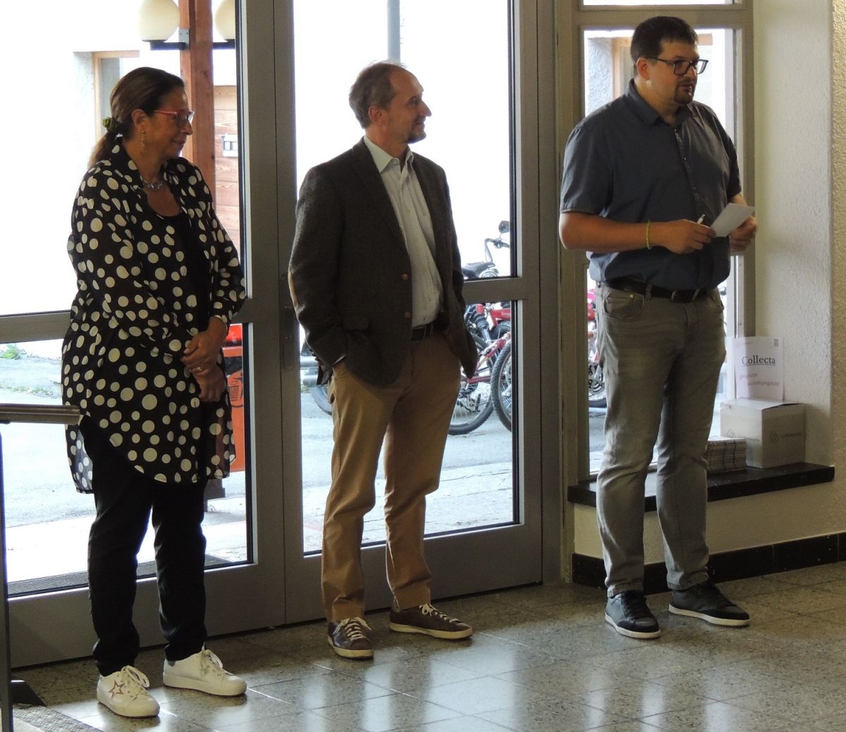 Gabriella Binkert Becchetti, Markus Solinger e Linard Martinelli han bivgnantà al cuors da rumantsch a Müstair (fotografia: Benedict Stecher).