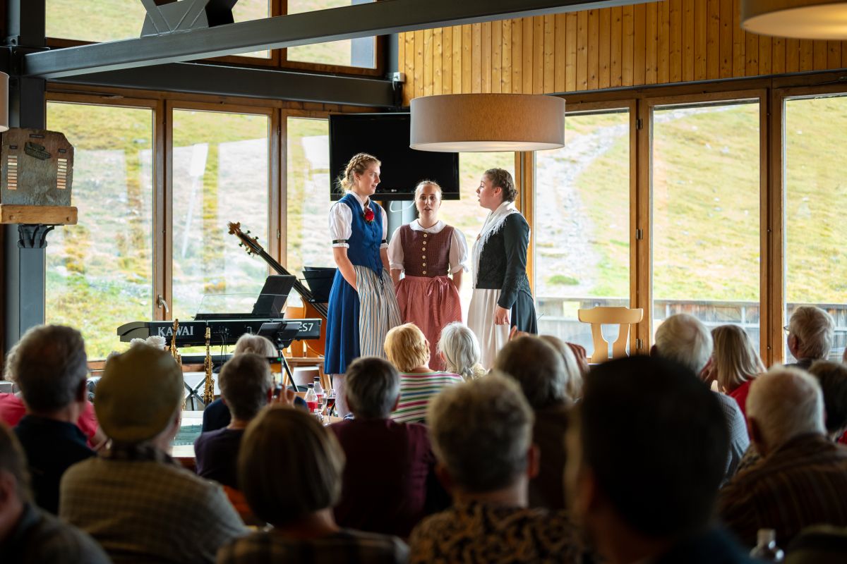Die drei Jodlerinnen des Quartetts stichfest begeisterten das Publikum auf Furtschellas. Foto: Sils Tourismus/Steve Hadorn