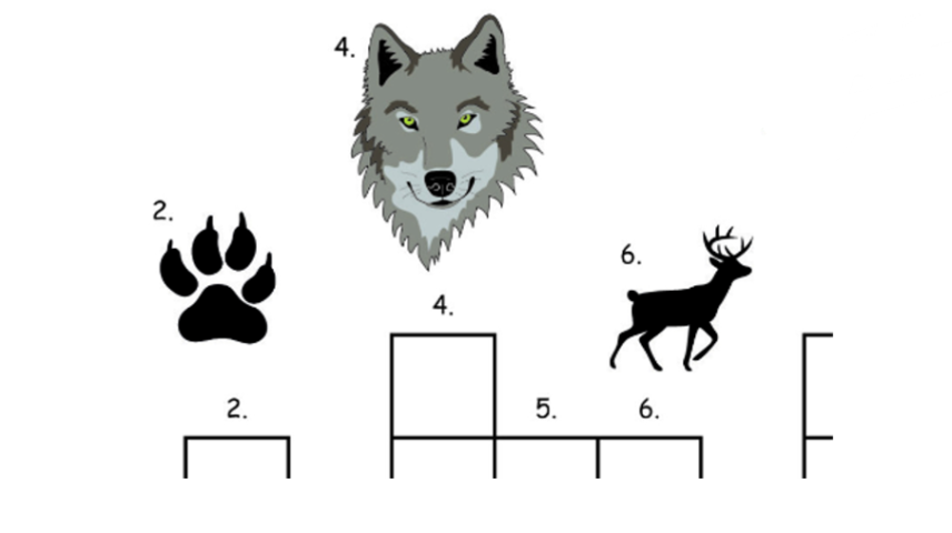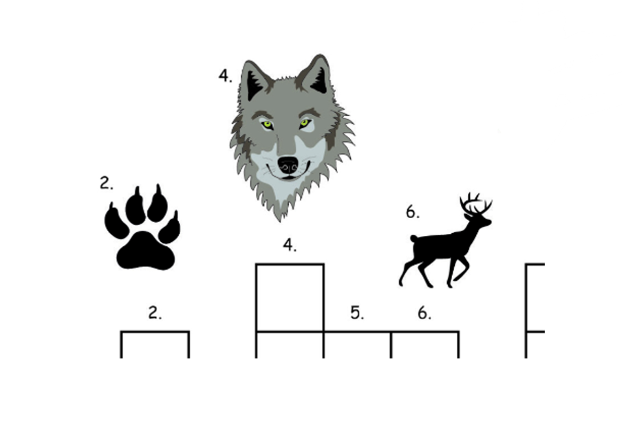 Finde die passenden Begriffe rund um Wald und Wolf!