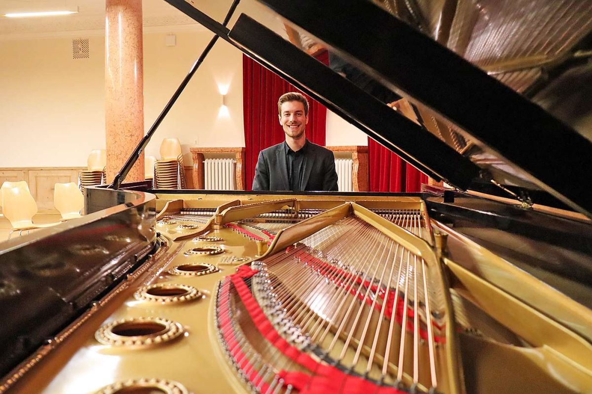 In lündeschdi saira es gnü inaugurà il Steinway restaurà cun ün concert dal pianist Dominic Chamot in l’aula plaina da l’IOF (fotografia: Martin Camichel).