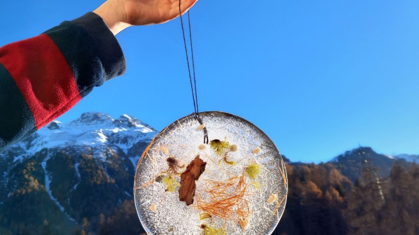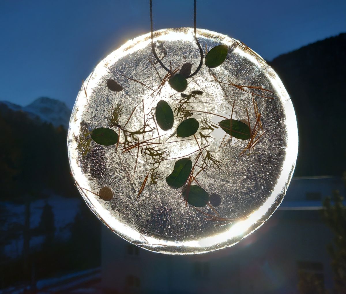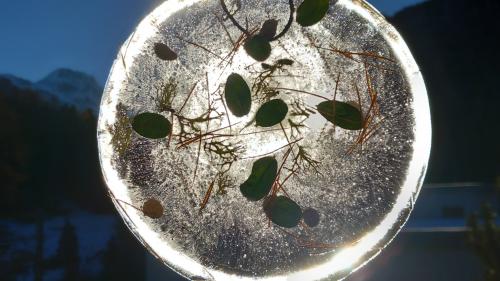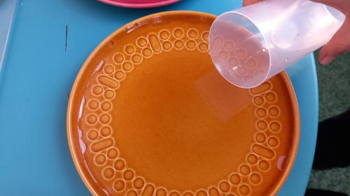 Lass dein Kunstwerk nun draussen stehen, bis es gefroren ist. Danach hältst du den Teller mit der Unterseite kurz in heisses Wasser, so dass sich das Bild herauslösen lässt: