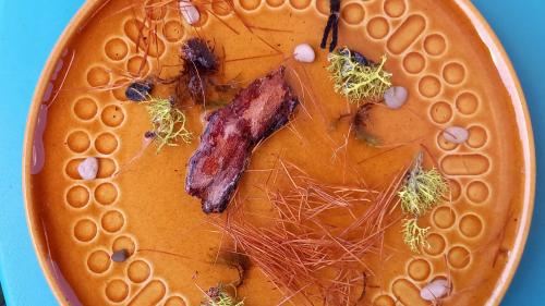 Danach gibst du die Sachen nach belieben auf den Teller ins Wasser: