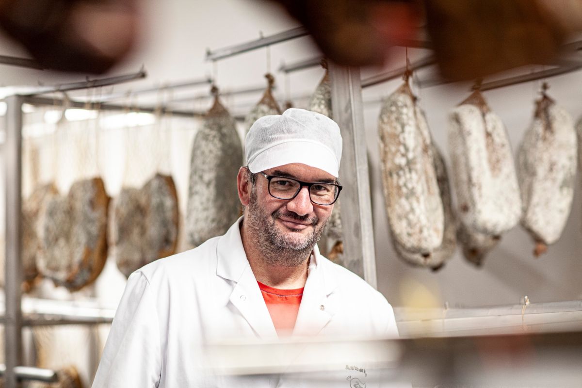 Il bacher Reto Zanetti serra sia butia a Sent (fotografia: mad).