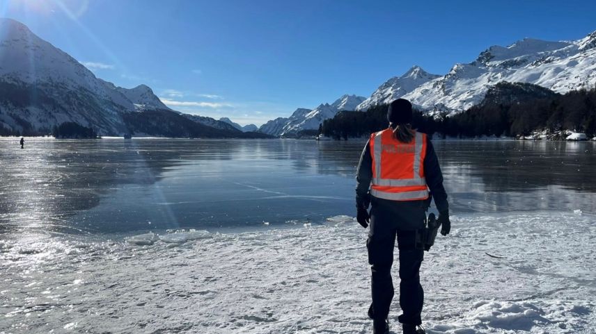 Die Kantonspolizei Graubünden appelliert, sich nicht auf das vermeintlich sichere Eis zu wagen. Das Betreten der Eisflächen auf den Oberengadiner Seen geschieht auf eigene Gefahr.