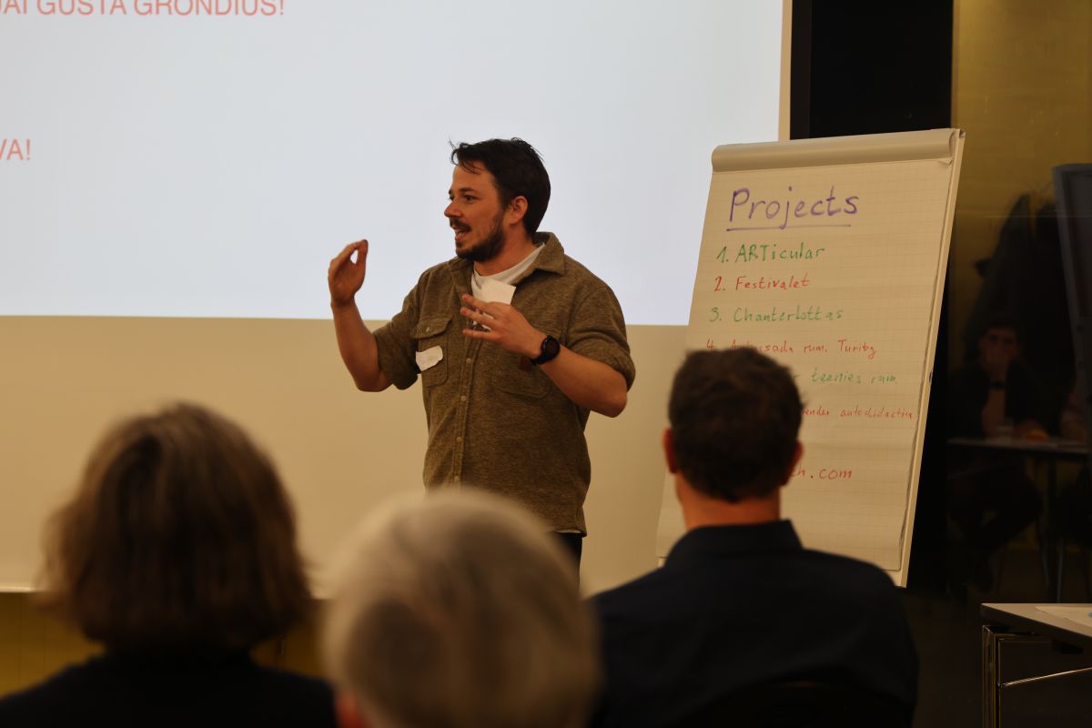 La gruppa intuorn Gian-Marco Maissen chi ha elavurà l’idea da la plattafuorma per imprender rumantsch (fotografia: Martin Cantieni).