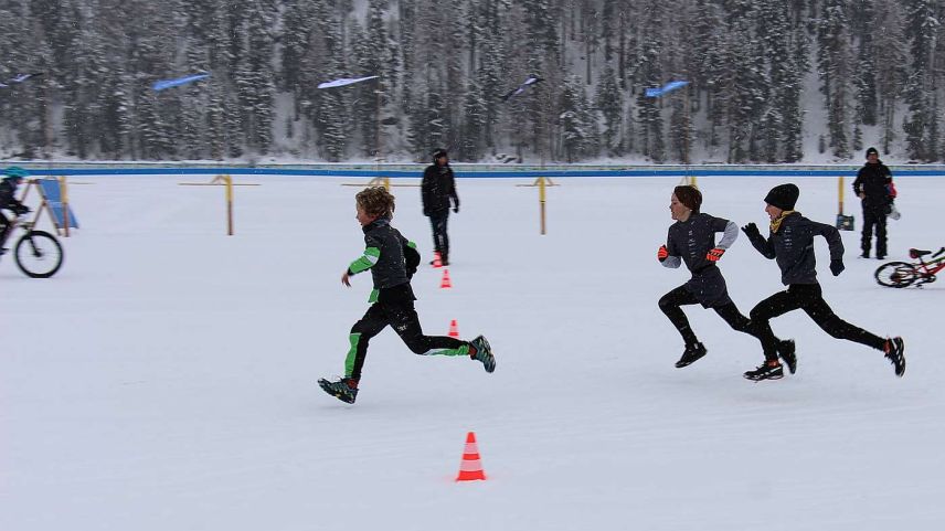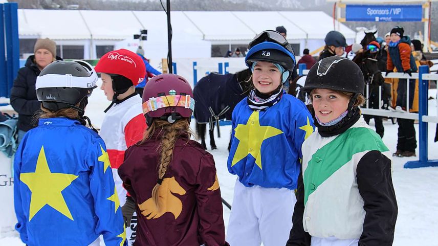 Radeln, Rennen, Traben, Galopp: Auf dem St. Moritzersee ist für Unterhaltung gesorgt. An den Family Days des White Turf können Kinder verschiedene Pferderennsportarten kennenlernen und sich darin messen.
