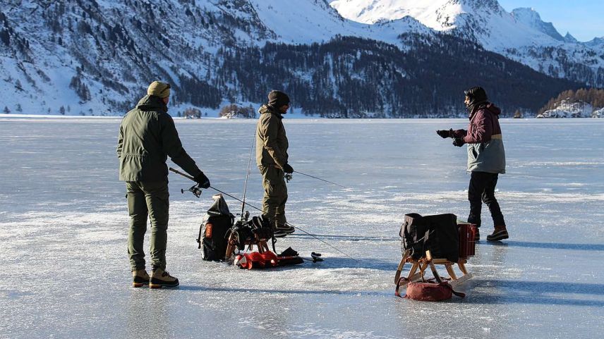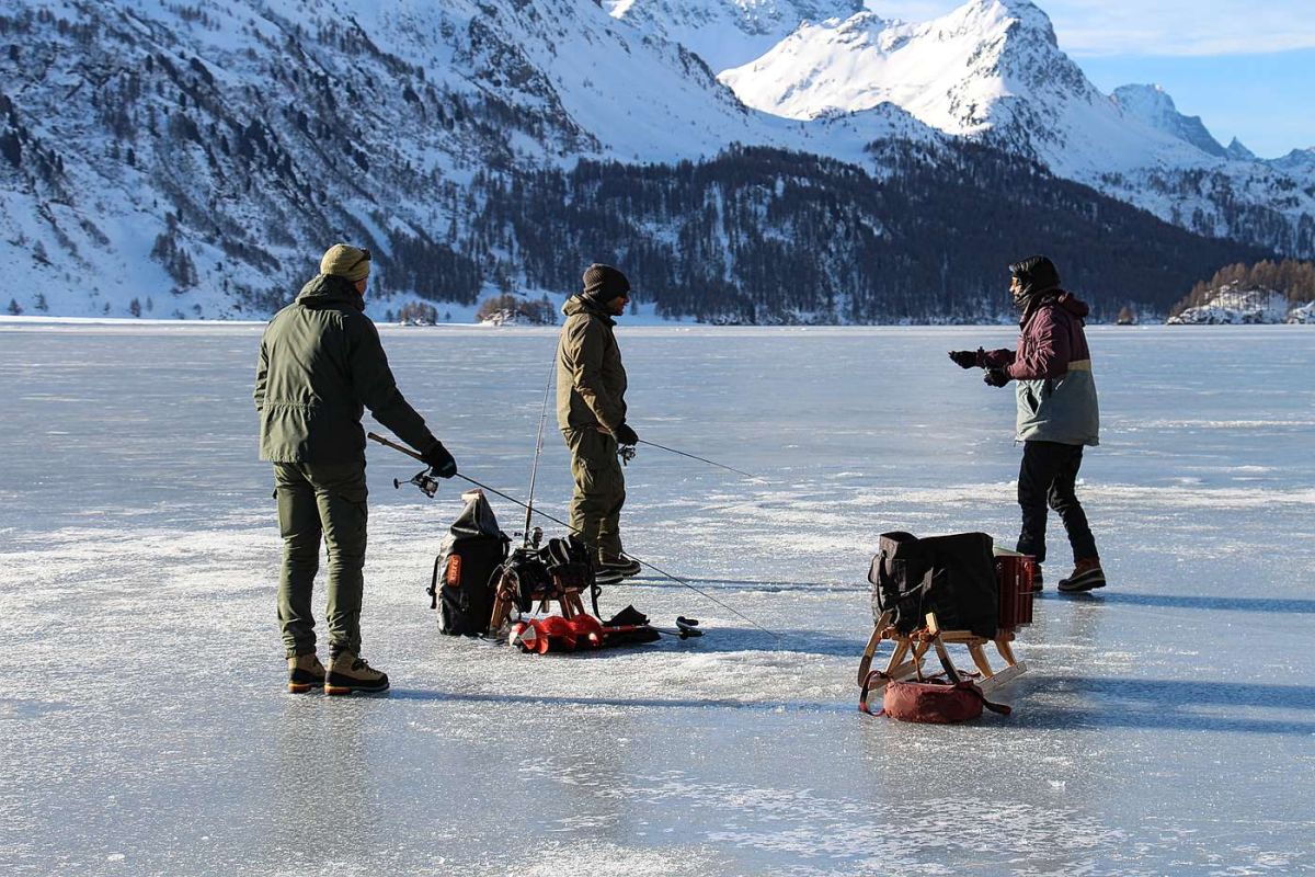 Sonntag, 8.30 Uhr. Auf dem noch schattigen Silsersee in der Bucht bei Sils Baselgia haben sich einige Eisfischer bereits am frühen Morgen eingefunden, um bei eisigen Minustemperaturen ihr Fischerglück zu versuchen. Darunter eine Gruppe von ...