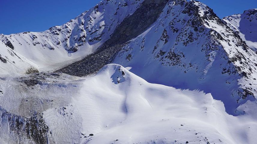 Durch schwindenden Permafrost bedingter Felssturz am Flüela Wisshorn. Foto: Robert Kenner/SLF