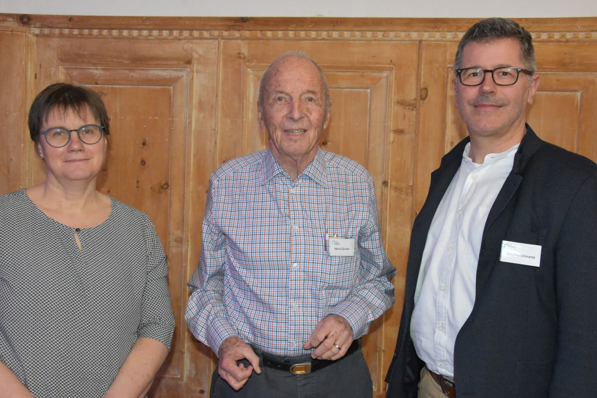 In preschentscha dal capo cumünal da Scuol, Aita Zanetti, ha surdat il president scadent, Heinz Zürcher (immez) las mastrinas da la gruppa d’interess dals