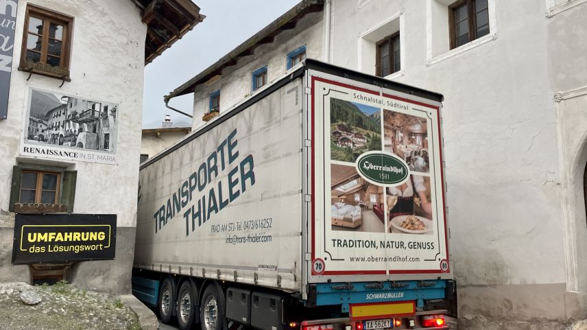 La via maistra a Sta. Maria es suvent bloccada. fotografia: Fadrina Hofmann