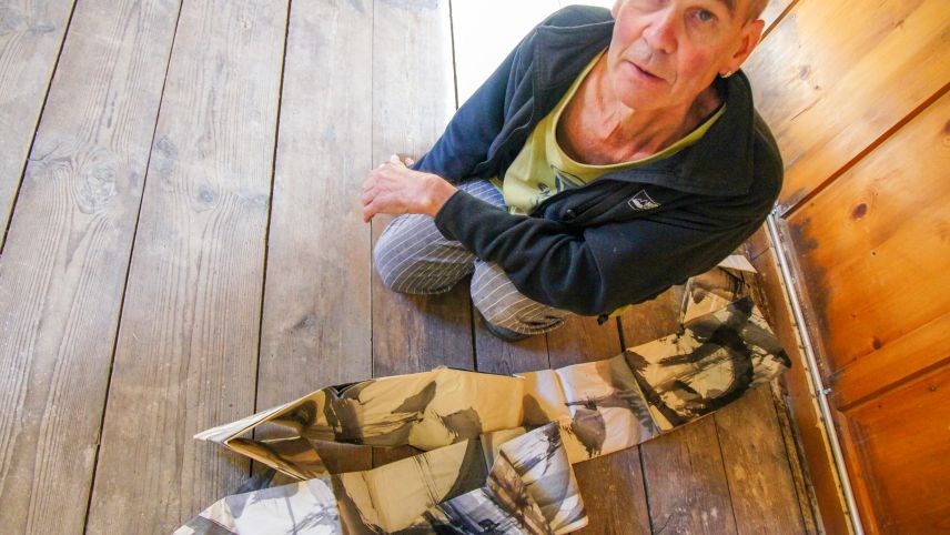Der Bergeller Künstler Piero Del Bondio 2015 im Kunstraum Riss in Samedan und 2013 im Château Papillon des Arts in St. Moritz-Dorf. Archivbilder: Jon Duschletta
