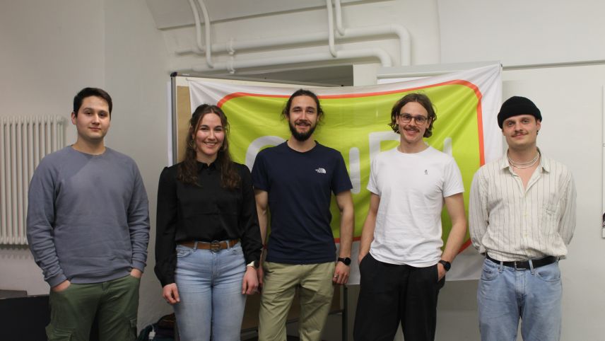 La suprastanza da la GiuRu: Simon Scandella (da schnestra), Mevina Conrad, Mic Armon Conrad, Lucas Kirchen e Flurin Schlegel (fotografia: mad).