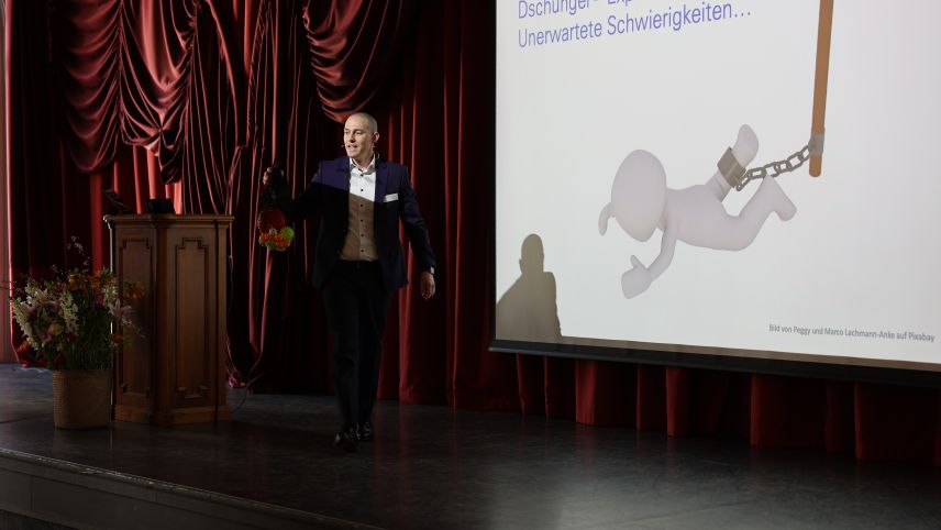 Sandro Müller präsentiert das Thema Cibersecurity auf anschauliche Weise. Foto: Dario Dosch