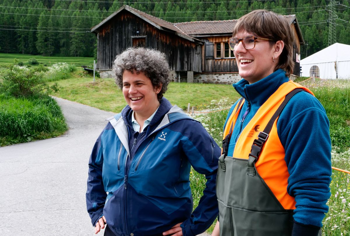 Stefanie Gubler, Leiterin Nationalpark-Forschungskommission, (links) im Gespräch mit der ETH-Mitarbeiterin Sasha Löffler. Fotos: Jon Duschletta