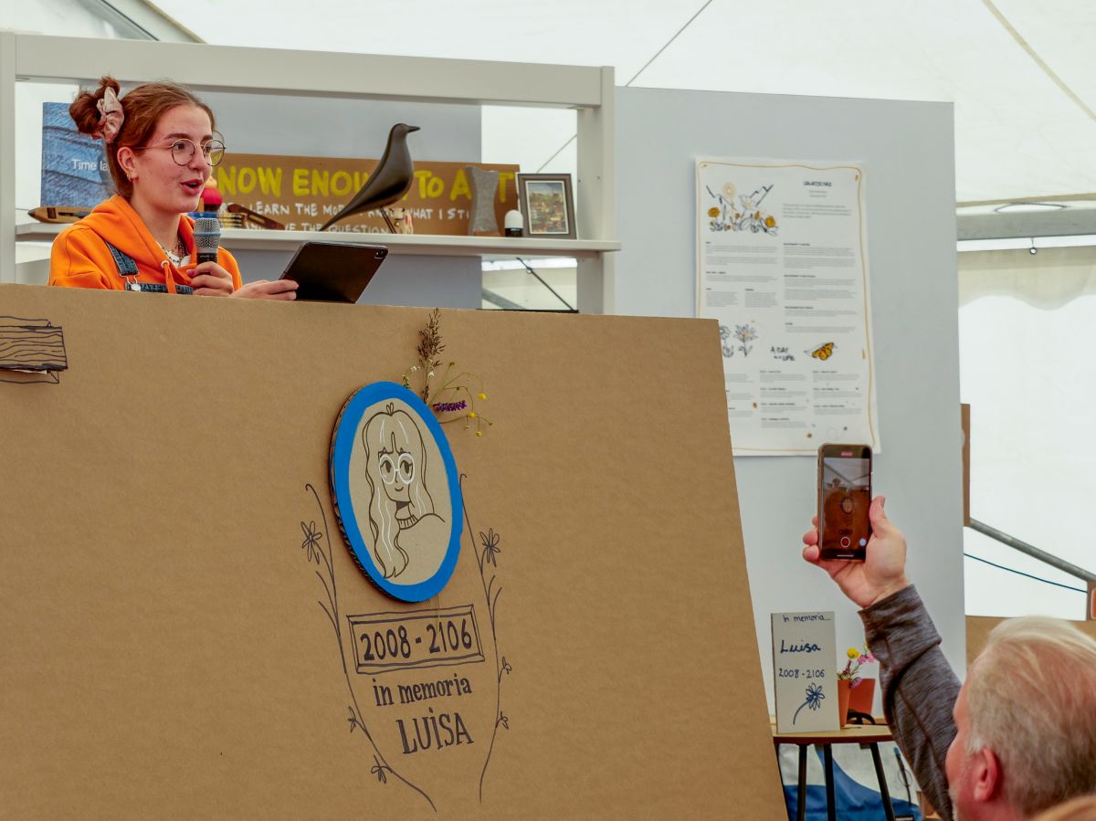 Lyceumsschülerin Giulia Pietrogiovanna bei der Präsentation der Gruppenarbeit, In memoria da tatta Luisa.