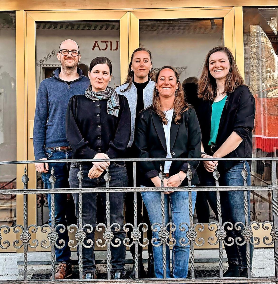 La suprastanza actuala da l’Uniun dals Grischs (da schnestra): Jon Duri Pult, Fadrina Hofmann, Carmen Baumann, Victoria Mosca e Gianna Duschletta. fotografia: Uniun dals Grischs