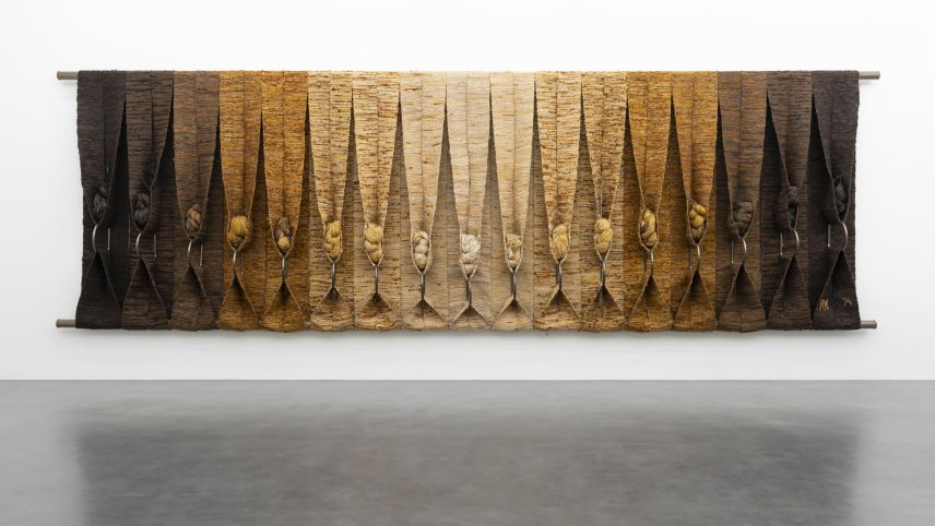 Werke im ersten Obergeschoss, die auf den Übergang von der Weberei zu skulpturalen Arbeiten verweisen. Foto: Federico Sette