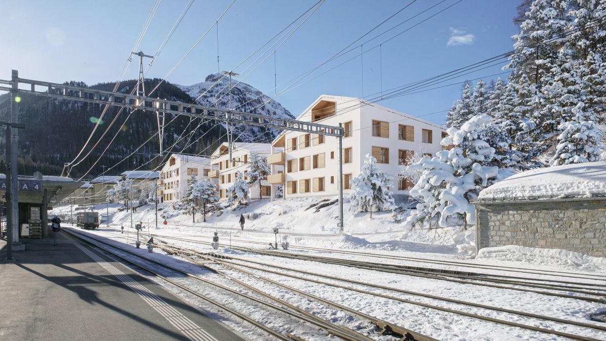 Das Siegerprojekt Colliar von zur Schaffung von neuen Erstwohnungen durch die RhB Immobilien AG im Gebiet Prasüras durch die Hornberger Architekten AG aus Zürich und der Gardens Gartenideen AG aus Horgen. Visualisierung: Hornberger Architekten AG