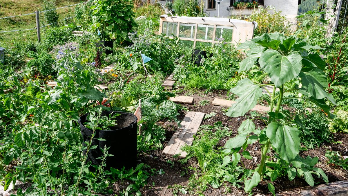 Vor der Villa Gredig beim Ospiz Chapella gedeiht allerlei Gemüse und Salat, blühen Blumen und auch schon der Buchweizen. Der kleine, wilde Garten ist der erste und bisher einzige Garten des Projekts «Gartenkind» von Bioterra Schweiz im Engadin.