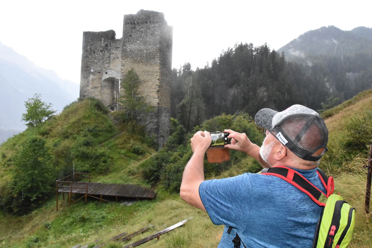 La visita da la ruina Tschanüff es il punct culminant da la spassegiada guidada cun Andri König tras Ramosch – cun bella e cun trid’ora (fotografia: Nicolo Bass).