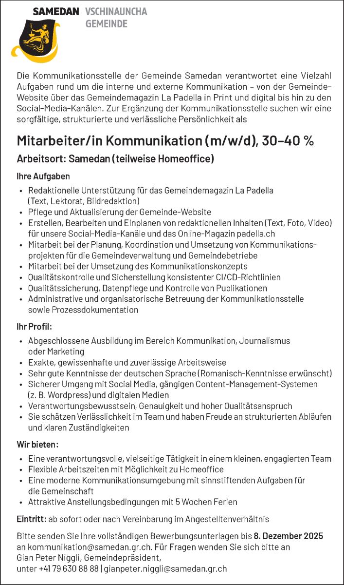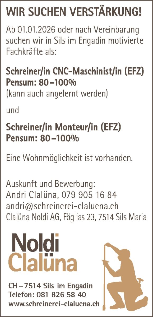 Um den Artikel in voller Länge lesen zu können abonnieren Sie die «Engadiner Post/Posta Ladina» oder loggen Sie sich ein. Wir wünschen eine interessante Lektüre.