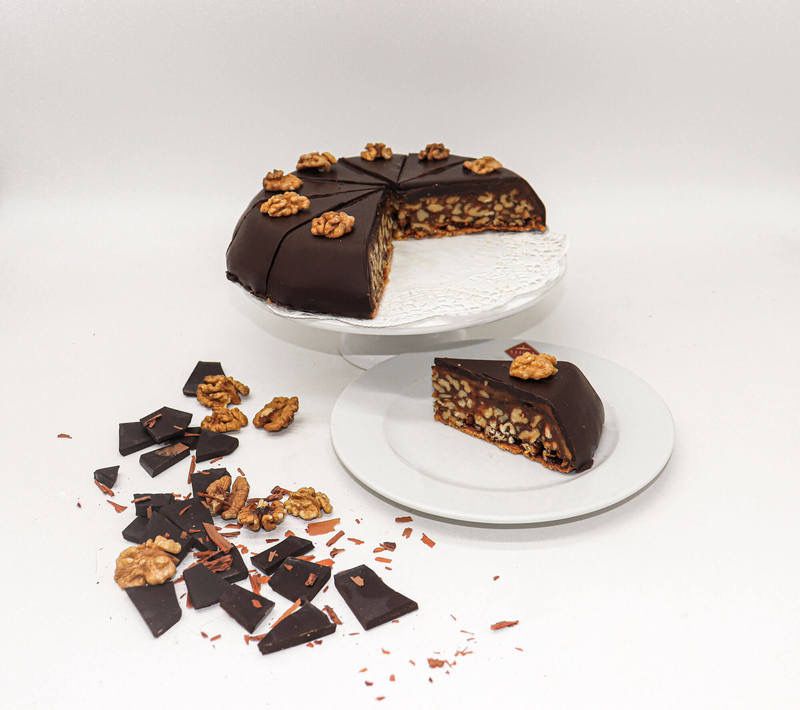 Während seiner Recherchen hat Gaudenz Zimmermann in Wien noch eine weitere Entdeckung gemacht. Die «Conditorei Sluka», gegründet 1891 in Wien, verkauft eine «Engadiner Nusstorte» mit Mürbeteig, Walnüssen und Karamell sowie dunkler Kuvertüre. Tatsächlich wird auf der Internetseite auch transparent angegeben, dass diese Torte aus dem Engadin stammt.
