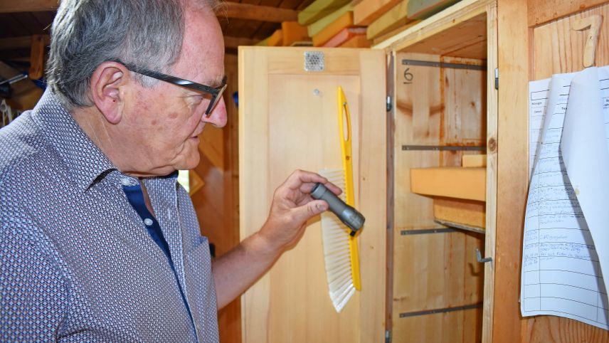 Erwin Küng widmet sich nach der Pension seinem Hobby: Er hält in Bever Carnica-Bienen. Foto: Imke Marggraf