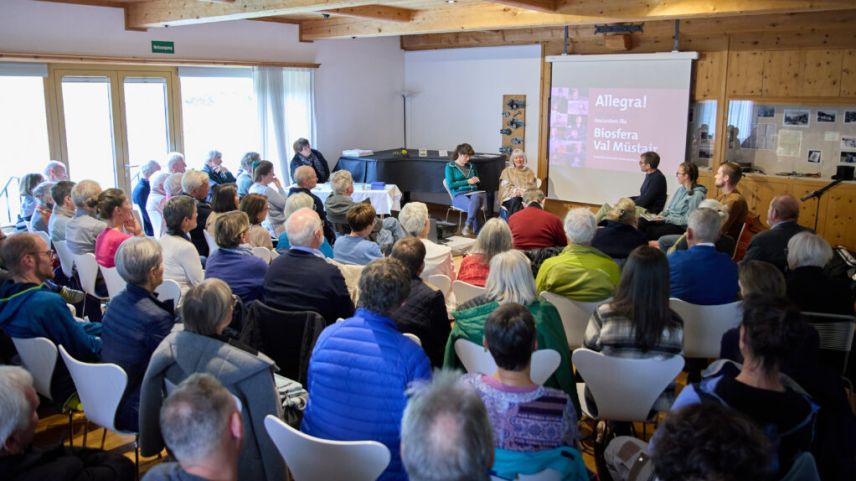 La «Chasa Jaura» a Valchava d’eira stachi plaina per la vernissascha dal cudesch «Allegra! inscunters illa Biosfera Val Müstair». Foto: Michael Steiner/fmr