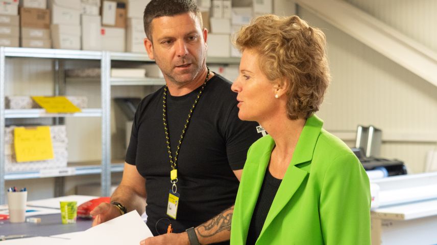 Lilian Ladner im Gespräch mit Fadri Tschenett der Firma Tschenett AG in Müstair.