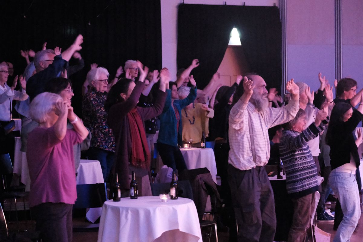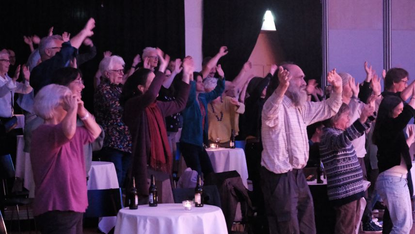 La Pascal Gamboni Combo Crassira ha fat ballar ün’intera sala als Dis da litteratura a Domat (fotografia: Sandro Spreiter/RTR).