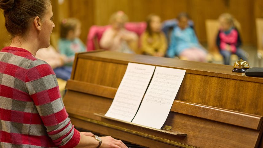 Nina Mayer fa cullas mattas dal coro «minis» las prouvas pel concert (fotografia: Michael Steiner).