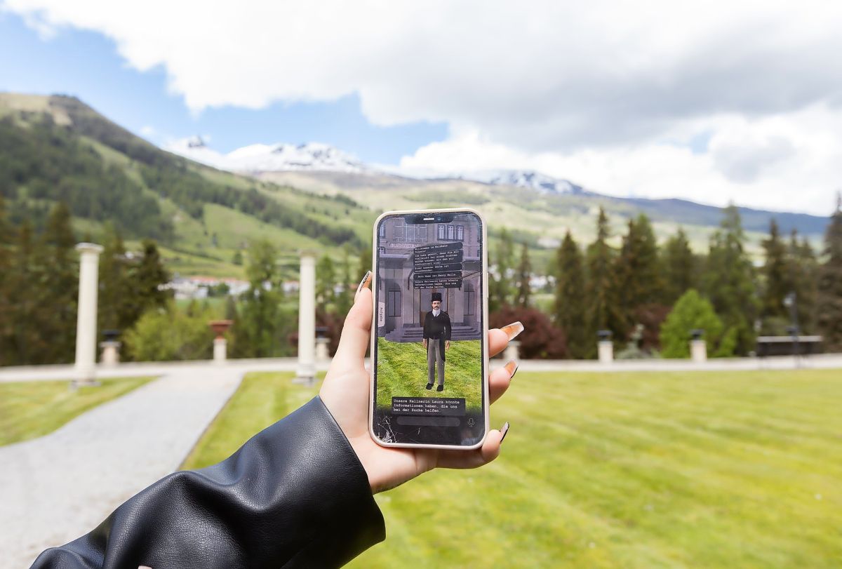 Rätselspass am ehemaligen Hotel Waldhaus. Die App «Misteri a Vulpera» entführt die Nutzenden in eine längst