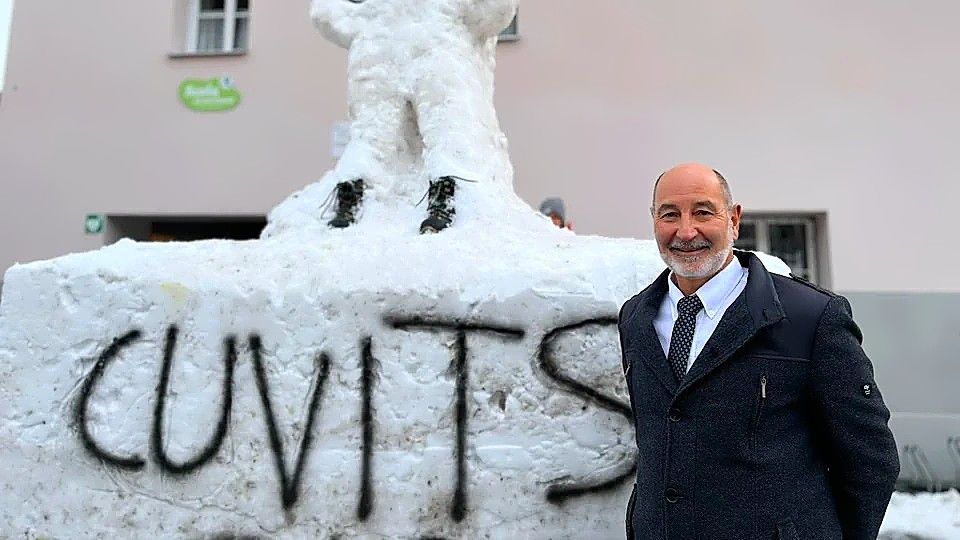 Peder Caviezel, il nov capo cumünal da Valsot, es gnü saramentà als Cuvits 2025 a Ramosch (fotografia: RTR)