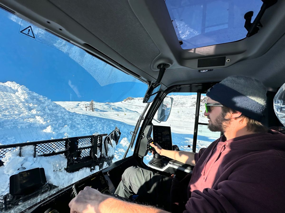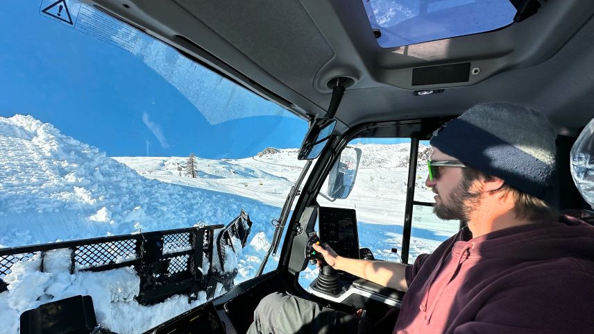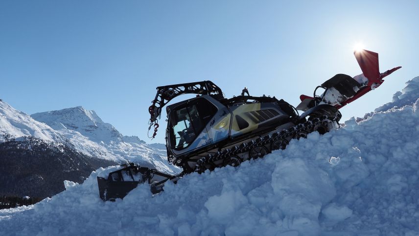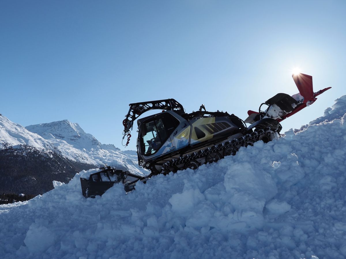 Der «Bully», wie die Fahrer die Maschine unter sich gerne nennen, nähert sich der Kuppe des gewaltigen Schneehügels und fährt dem Abhang entgegen. «Das ist aber ganz schön steil. Kann man da runterfahren?» Kündig antwortet ganz ...
