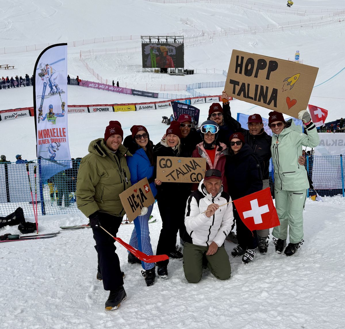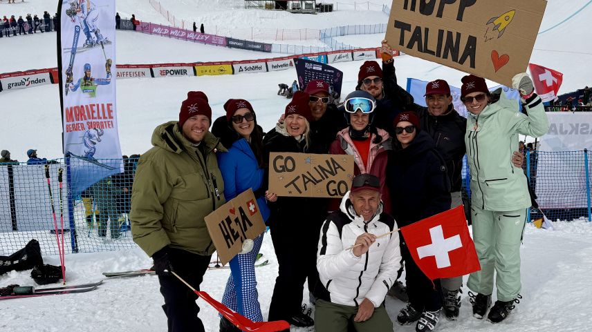 Schon von weitem ist das Banner für Talina Gantenbein zu sehen. «Hopp Talina». Ein Dutzend Fans haben sich dahinter versammelt, mit Schweizerfähnchen und magentafarbenen Mützen und Kappen. Auch Pappschilder haben Mutter Ulrike Gantenbein und die drei Freundinnen Luana, Rebecca und Désirée gemalt. Eigentlich hätten viel mehr Fans zum Skicross-Finallauf der Scuolerin kommen wollen, doch der Wettkampf wurde aufgrund der schlechten Wetterprognosen für das Wochenende um einen Tag vorverlegt und so fehlen jetzt viele, darunter auch Bruder Sascha.