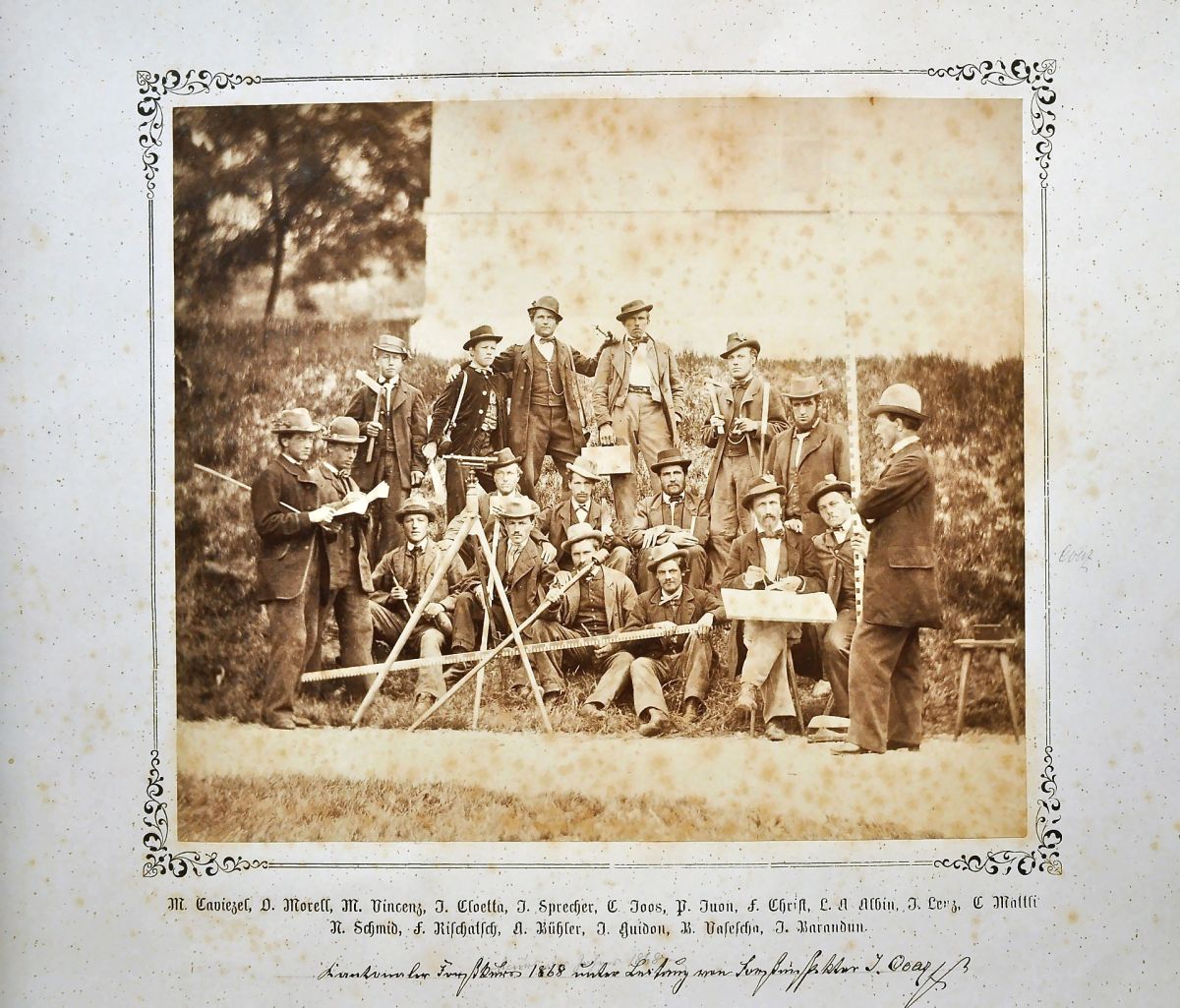 Kantonaler Forstlehrkurs 1868 in Churwalden. Ganz rechts steht der Kursleiter Coaz. Foto: z.Vfg