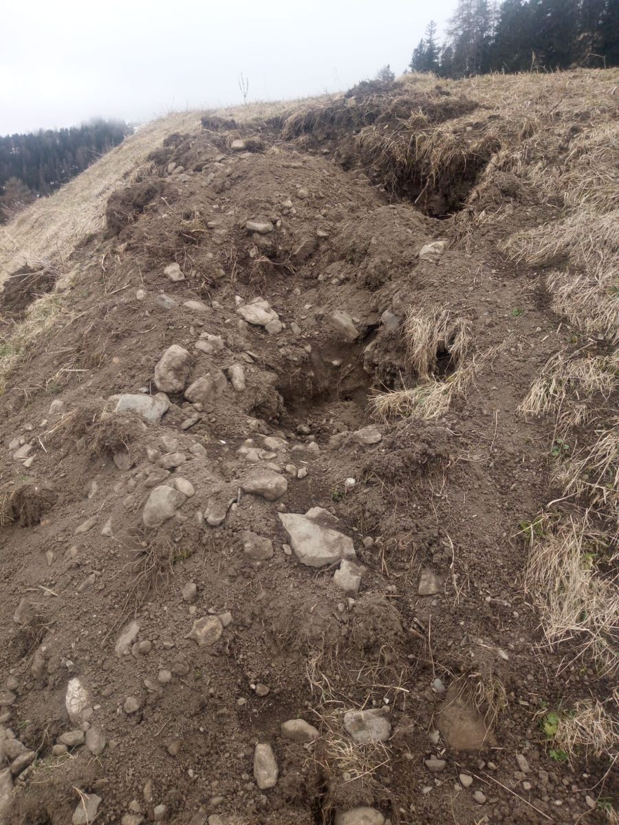 Süls prats dadour Tschlin in direcziun da Vnà ha ün püerch sulvadi chaschunà divers dons cun tscherchar nudritüra (fotografia: Gian Denoth).