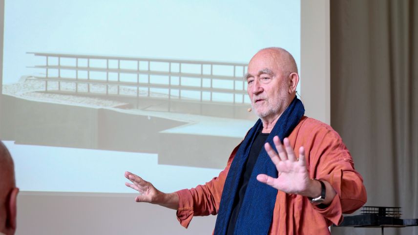 L’architect Peter Zumthor ha preschantà seis proget per ün nouv stabilimaint da lain a Valchava per la Tessanda Val Müstair. fotografia: Jon Duschletta