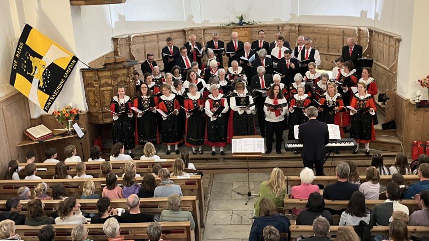 Dass sich der neue Chor mehr als gefunden hat und Dirigent Patrik Würms viel Freude an der neuen Truppe hat, bewies er nicht nur beim Dirigieren. Auch bei der Programmgestaltung bewies er ein gutes Händchen, und so kamen das anwesende Publikum, die für einmal in der viel zu kleinen Kirche einen Platz suchten, in den Genuss eines Konzerts, in dem von Patent Ochsner über traditionelle Lieder bis hin zum neuen «Pop Alpin» und einem in einem Pub entstandenen Song alles zu hören war. Die «Baselgia San Niculo» tat ihr Übriges, um im richtigen Moment die einzelnen Stimmen hervorzuheben oder beim Lied «La Montanara», das mit fünf verschiedenen Stimmen gesungen wurde, den gesamten Chor perfekt erklingen zu lassen. Auch die instrumentale Begleitung durch ein Flügelhorn und einer Querflöte bei einigen Liedern war optimal und stimmig gewählt.