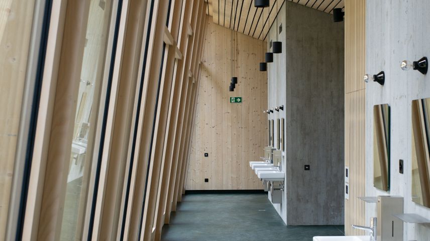 «Das Gebäude bietet eine hohe Aufenthaltsqualität und bildet das neue Zentrum der gesamten Anlage», schreibt die Gemeinde in einer Medienmitteilung. Der Büroraum mit Kiosk ist die zentrale Anlaufstelle für Gäste. Ein Aufenthaltsraum mit kleiner Küche und gedeckter Terrasse bietet einen Treffpunkt ausserhalb von Camper oder Zelt. Zudem gibt es Einrichtungen zum Geschirrspülen und Wäschewaschen.