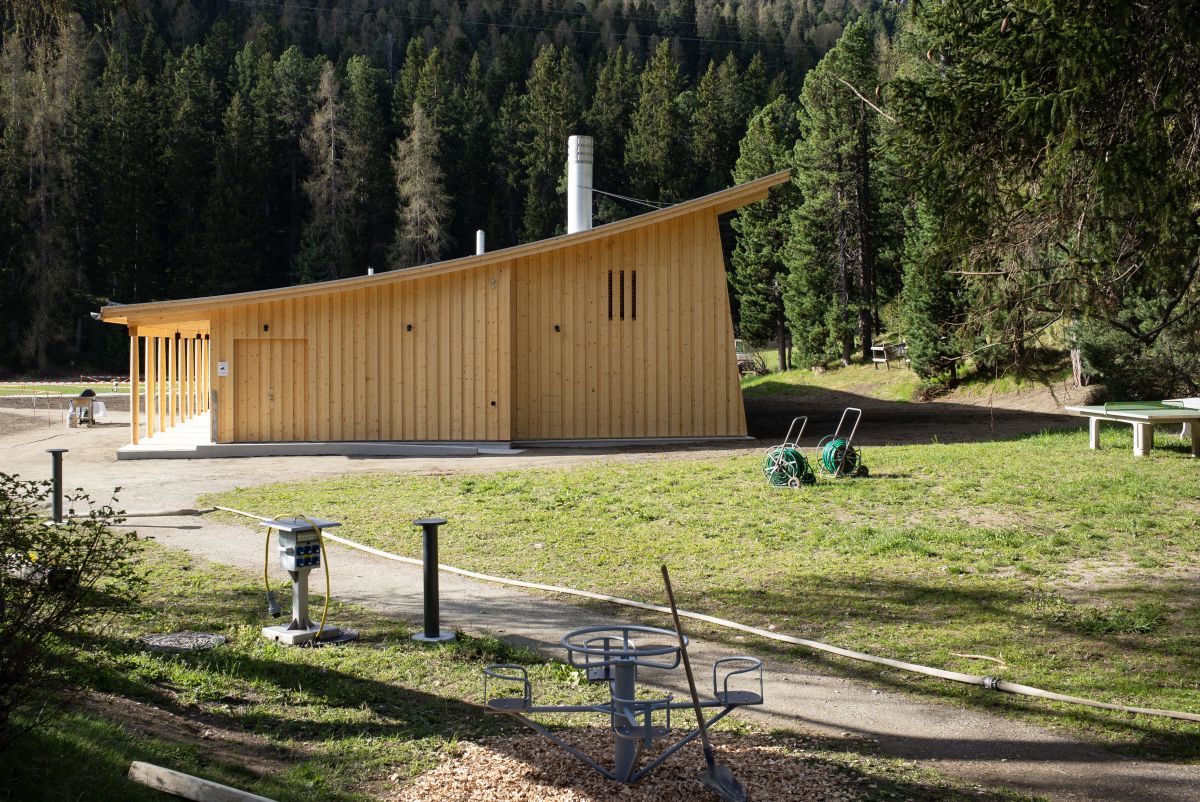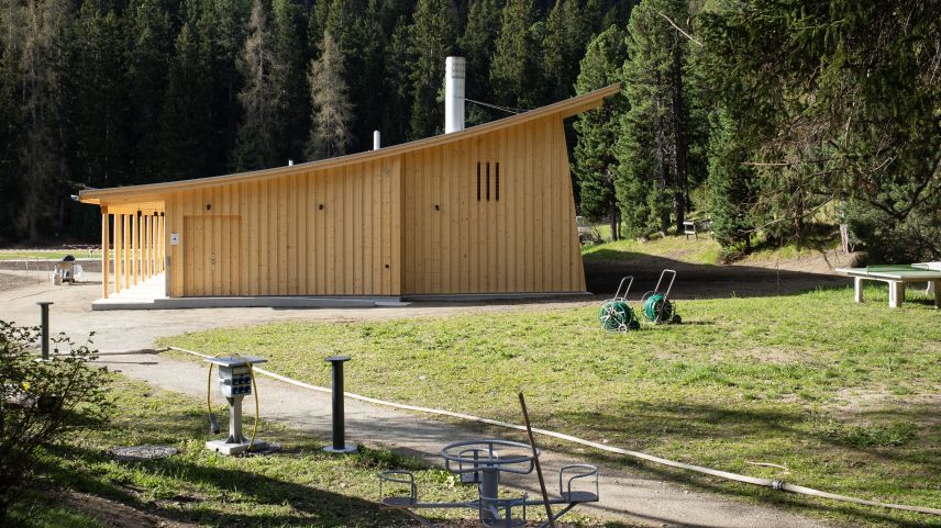 Geplant wurde das neue Gebäude von der ARGE Weitschies Krähenbühl aus Chur und Davos, umgesetzt wurde es gemeinsam mit einheimischen Unternehmen. Das längs zum Wald ausgerichtete Bauwerk bildet den Abschluss des Campingplatzes. Weitere Optimierungen, um diesen attraktiver zu gestalten, sind bereitsgeplant, wie die Gemeinde informiert: «In naher Zukunft soll die derzeit oberirdische Hochspannungsleitung, die den Campingplatz beeinträchtigt, erdverlegt werden.» Der Campingbetrieb dieser Sommersaison startet am 28. Mai und dauert bis zum 19. Oktober.