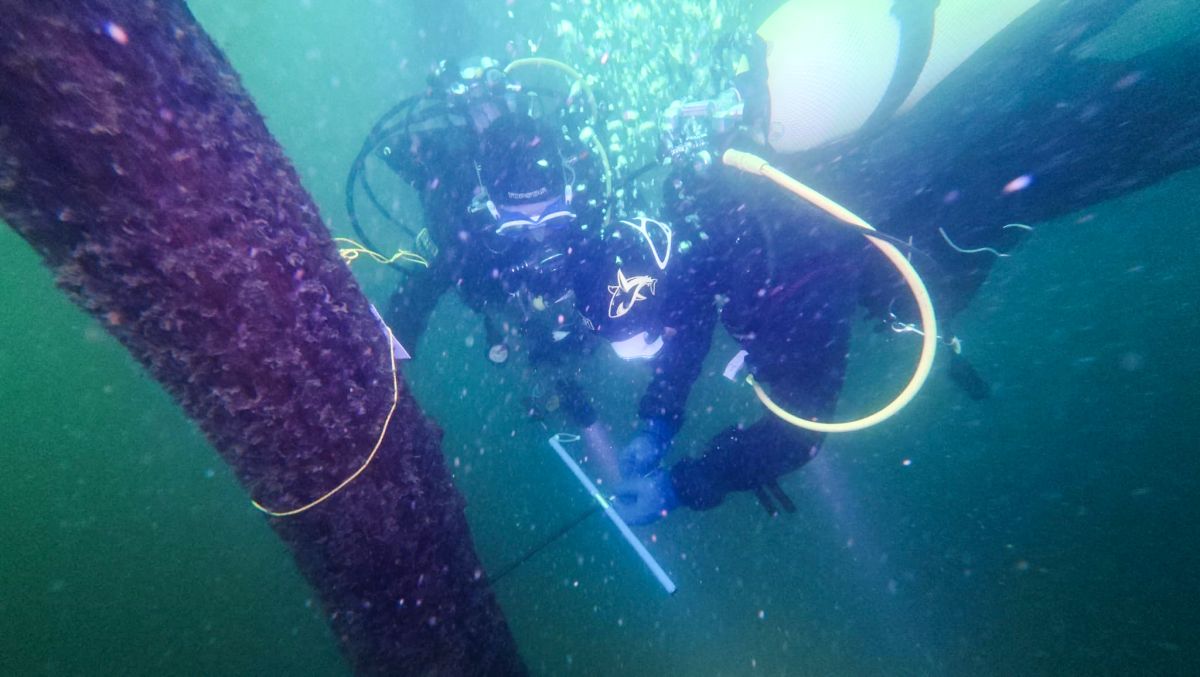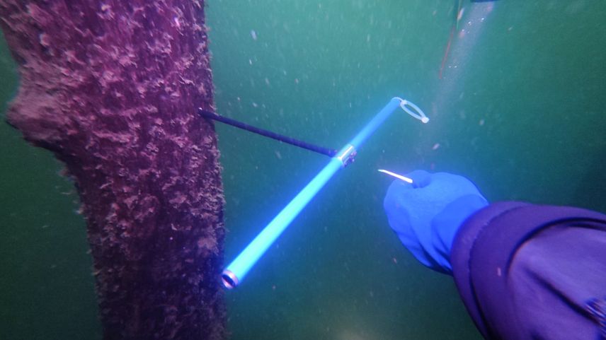 An Schnüren befestigte PET-Flaschen markierten während der zehntägigen Untersuchung die Position der ausgewählten Bäume am Seegrund.